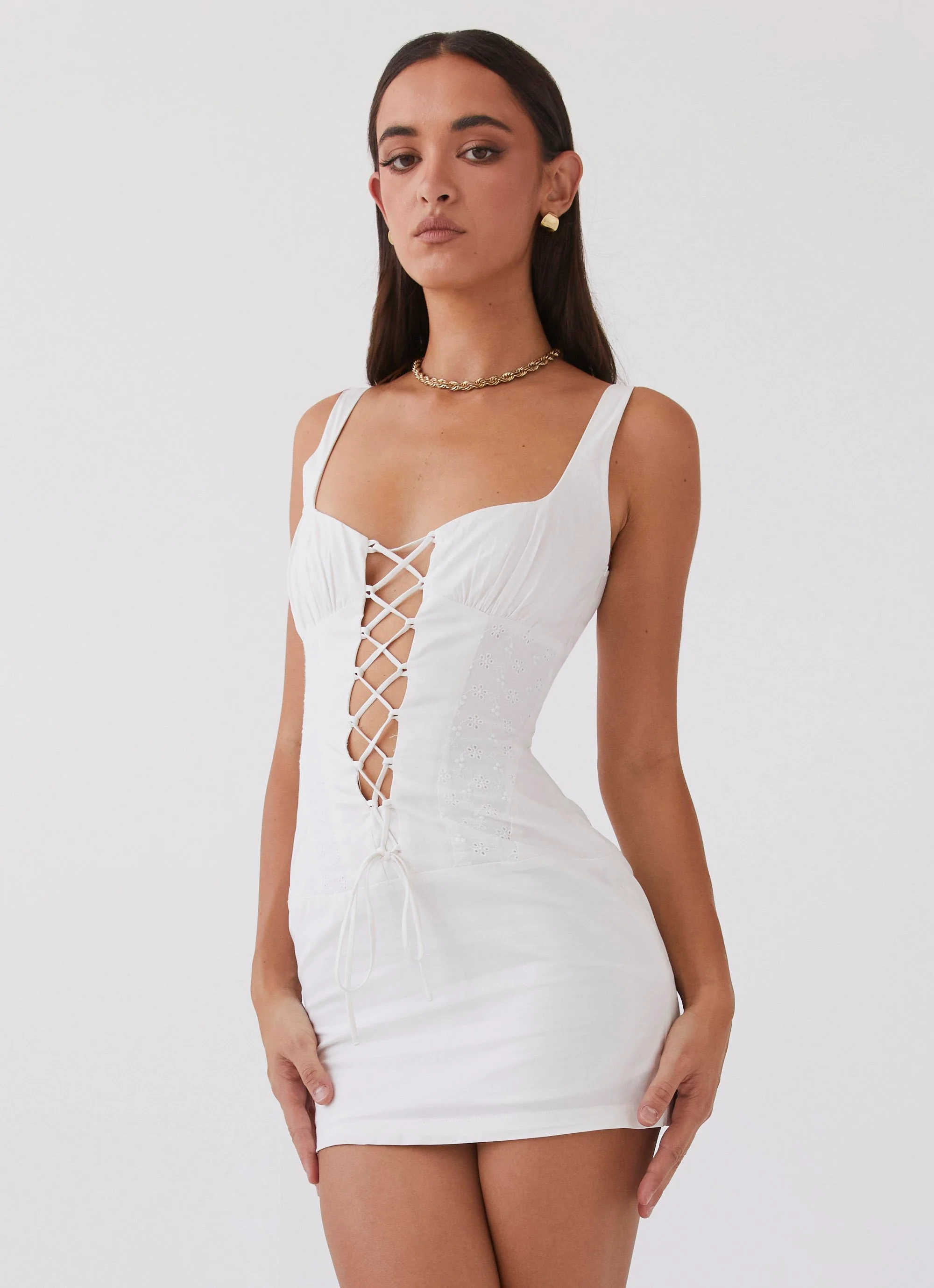 Casey Lace Up Mini Dress - White