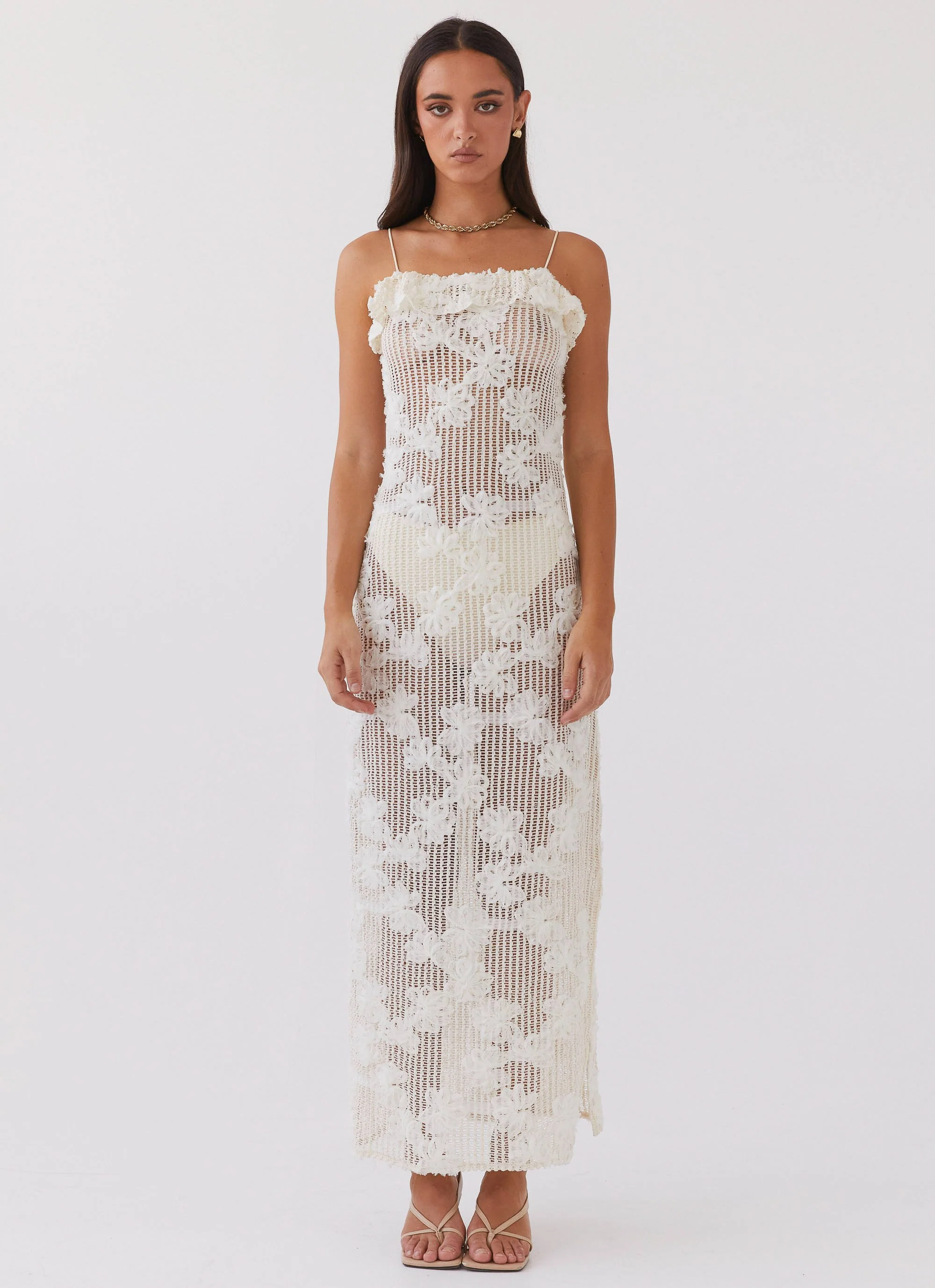 Evangeline Embroidered Maxi Dress - Ivory Tea