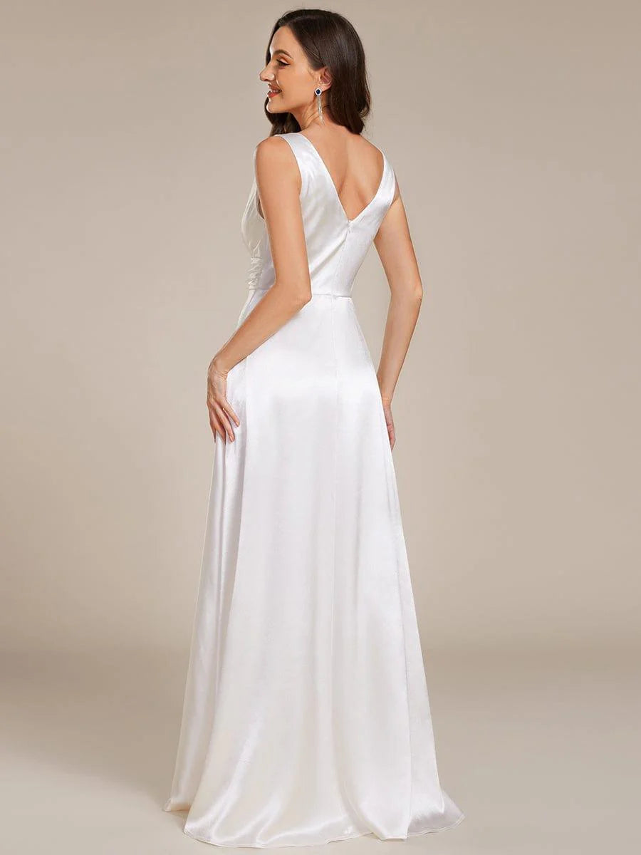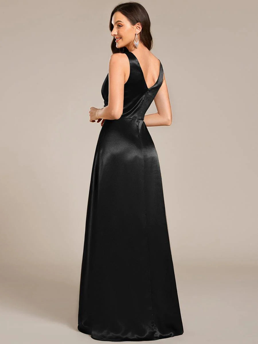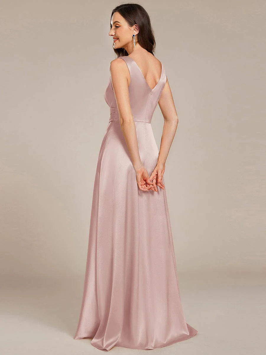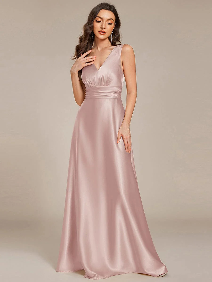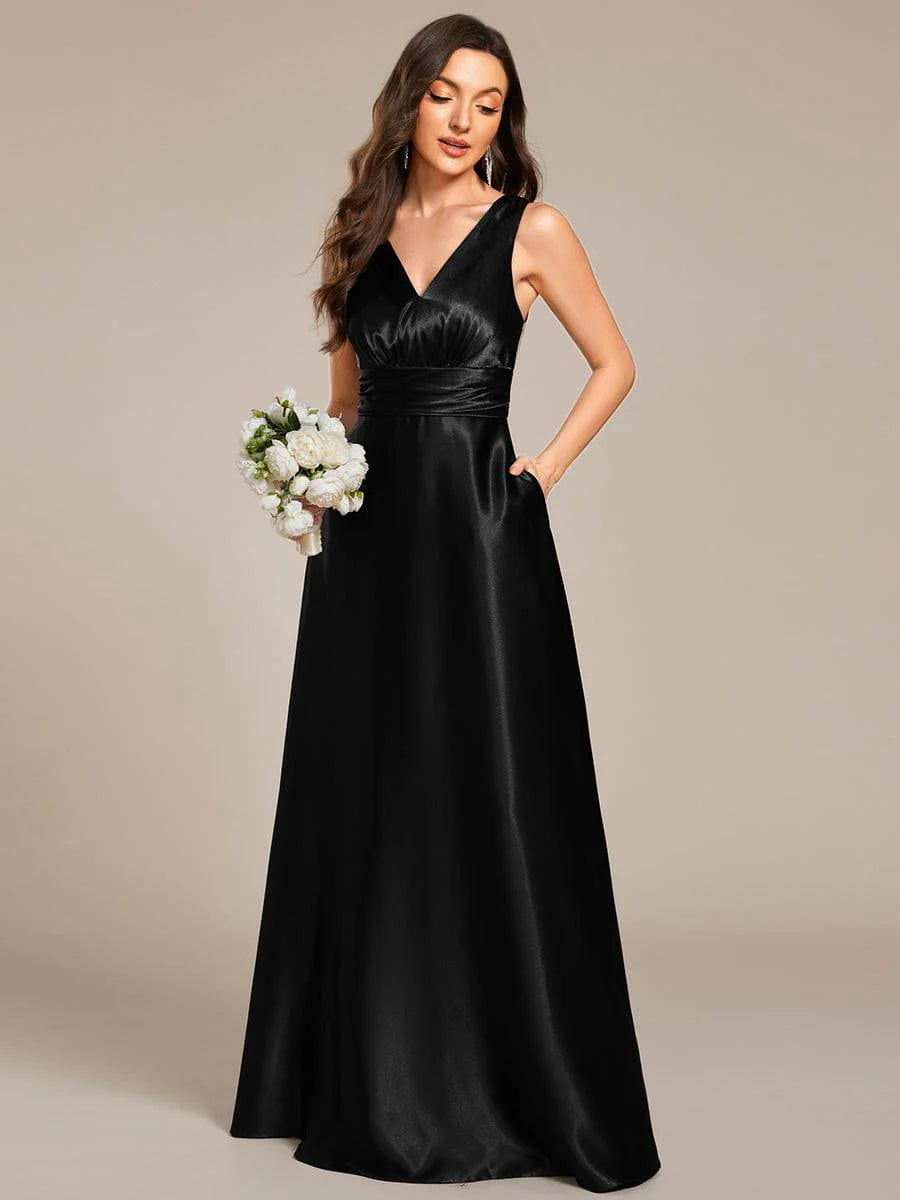 Feel radiant in this timeless satin maxi dress that flatters every bridesmaid. The ruched bodice flows into an empire waist, creating a stunning silhouette that photographs beautifully. The sleeveless design is perfect for summer weddings, while the premium satin fabric ensures comfort from ceremony to last dance. Available in a range of colors to match any wedding palette.