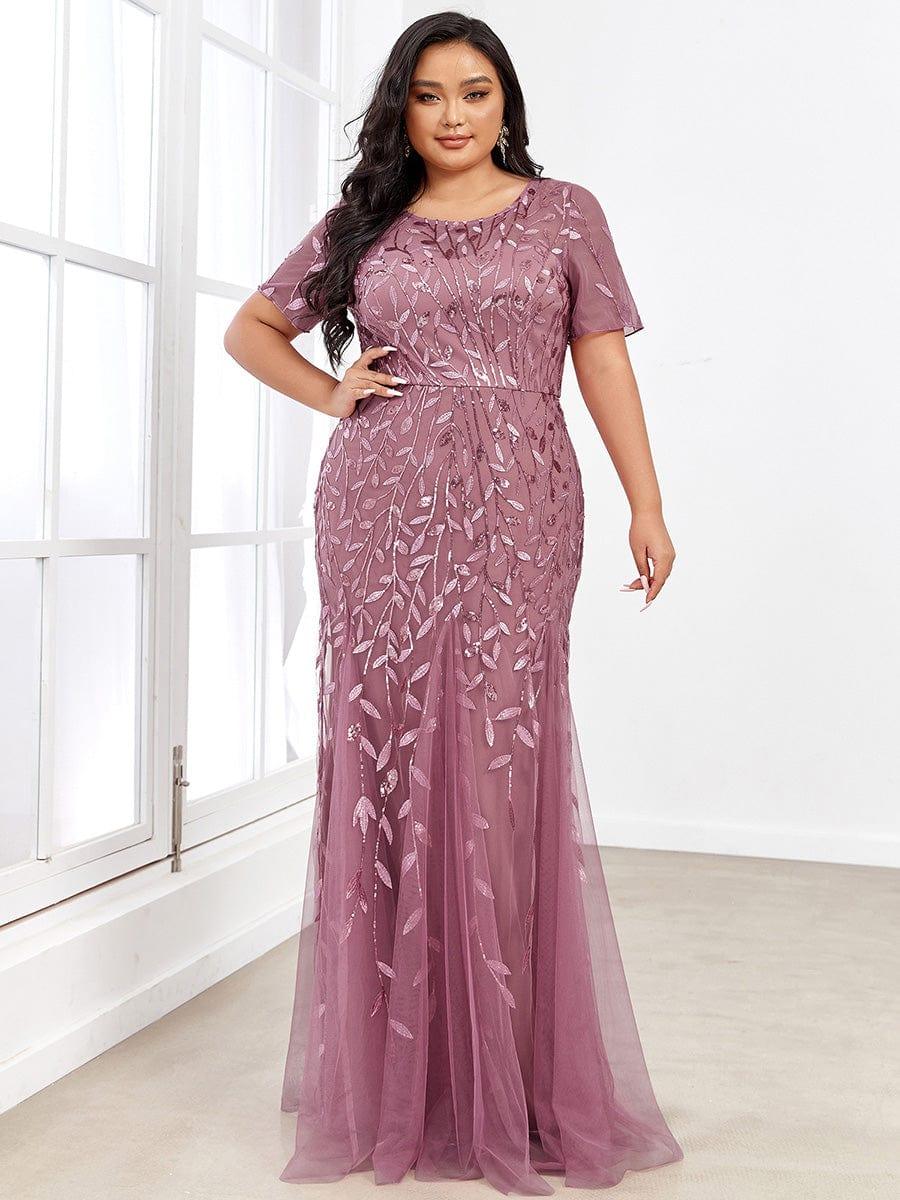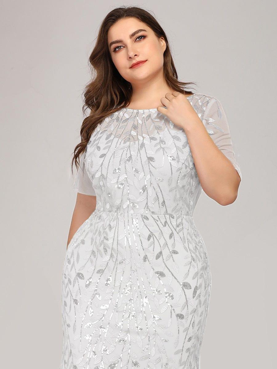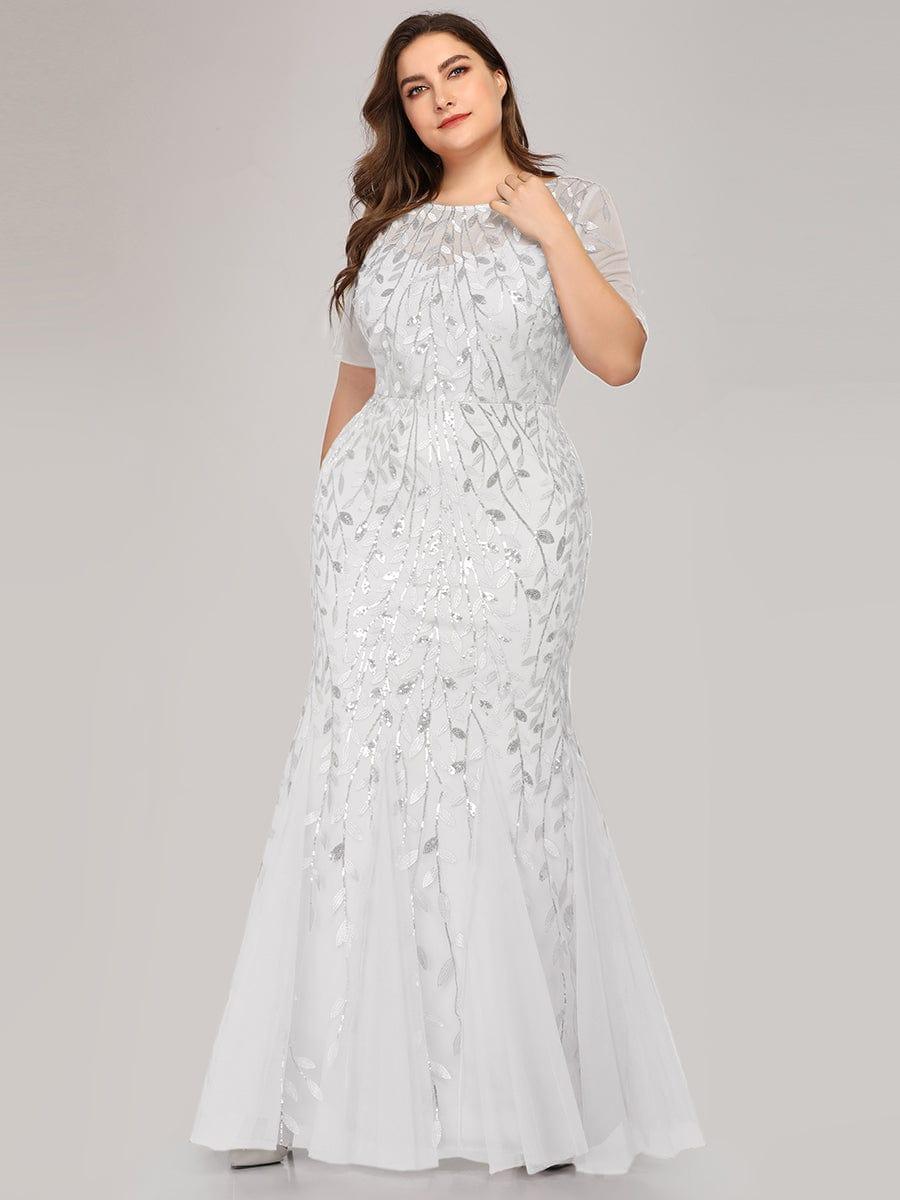 This sparkly mermaid prom dress with sleeves oozes romance with its shimmery leave design and a sheer round neckline. It is a perfect choice for people who are looking for an elegant look, but its delicate details add just enough flair to show your taste. It's perfect for evening party, prom, weddings, and any other formal affair!