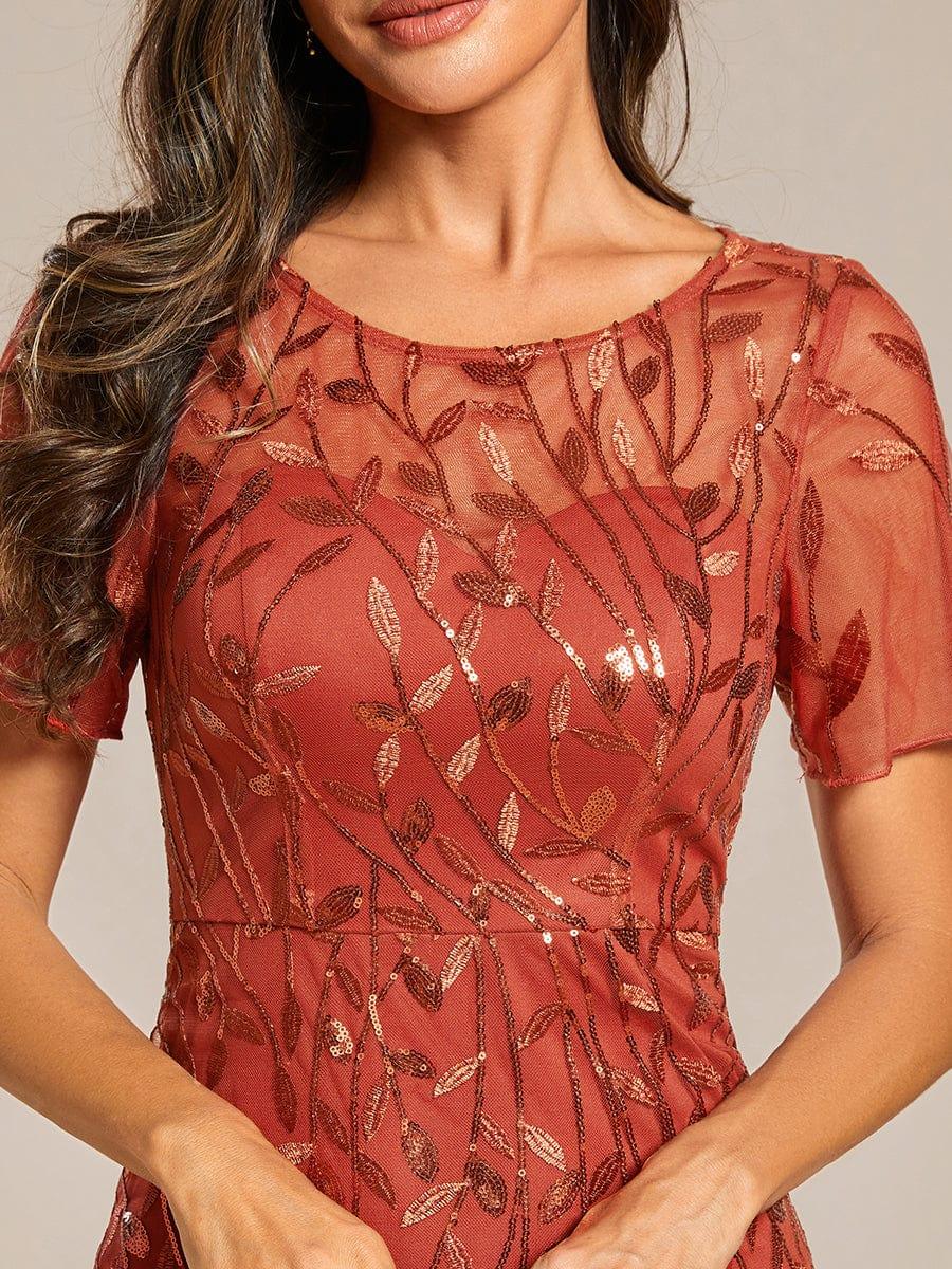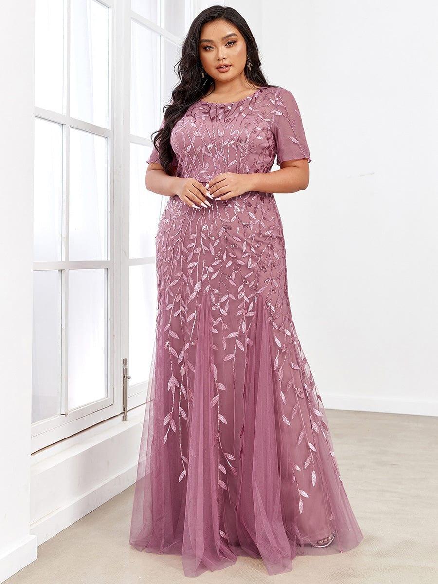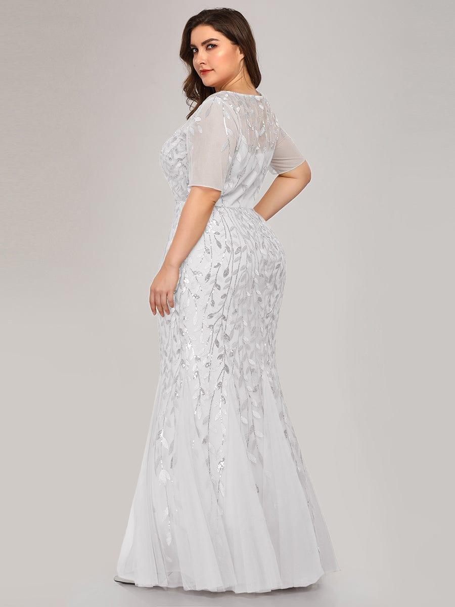 This sparkly mermaid prom dress with sleeves oozes romance with its shimmery leave design and a sheer round neckline. It is a perfect choice for people who are looking for an elegant look, but its delicate details add just enough flair to show your taste. It's perfect for evening party, prom, weddings, and any other formal affair!