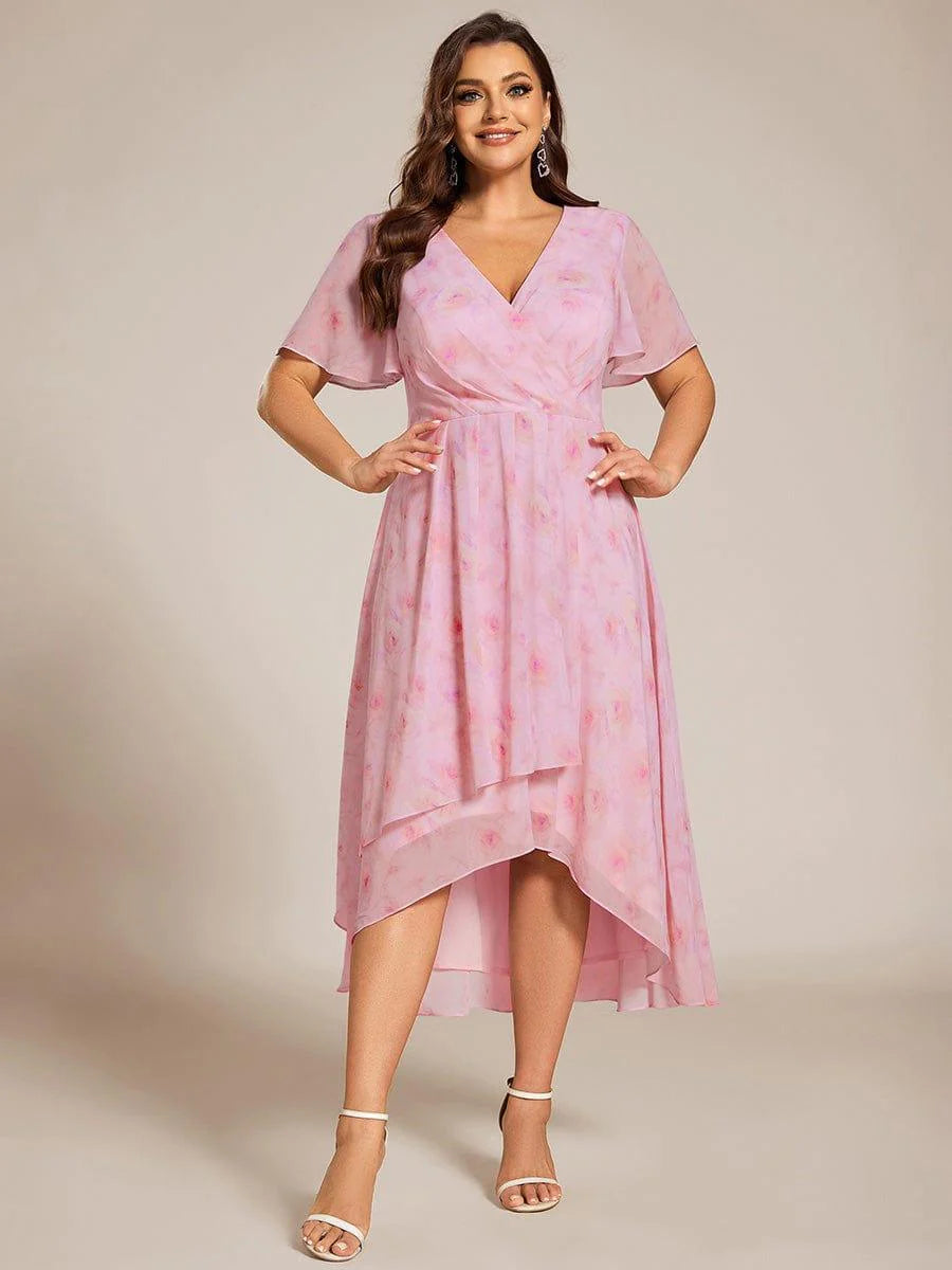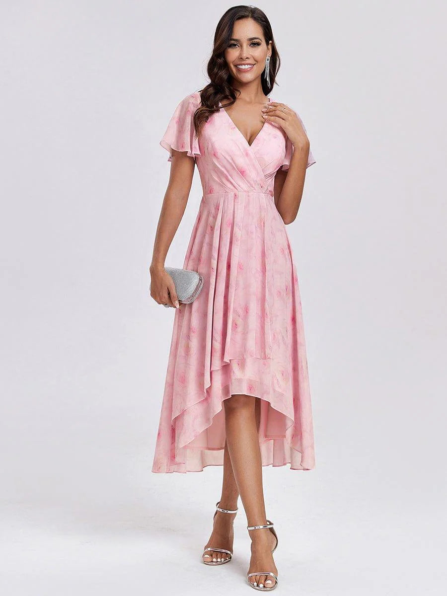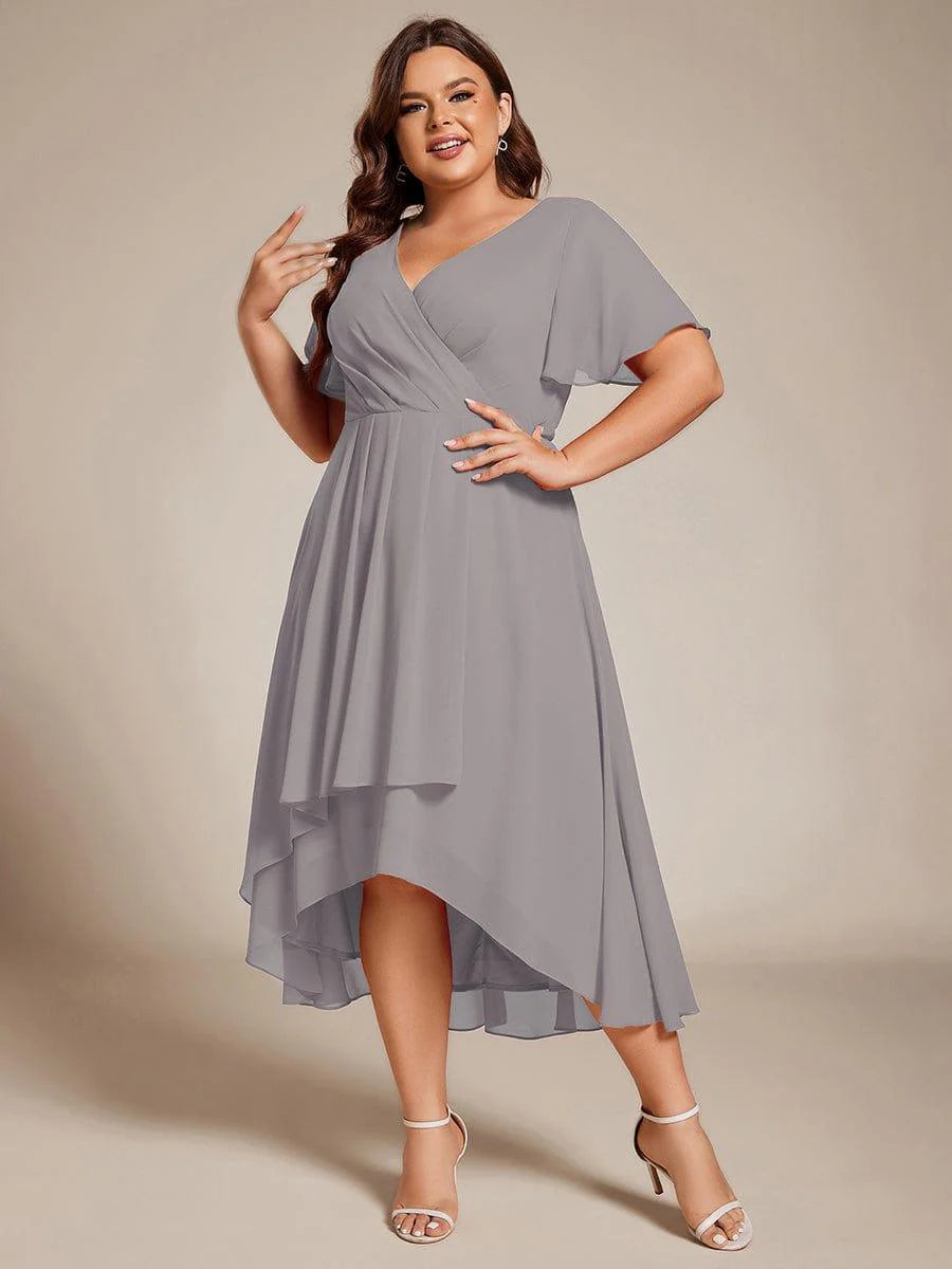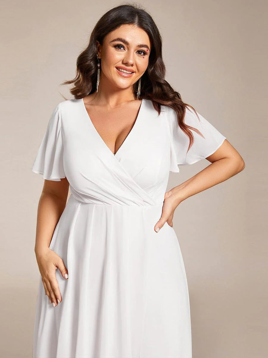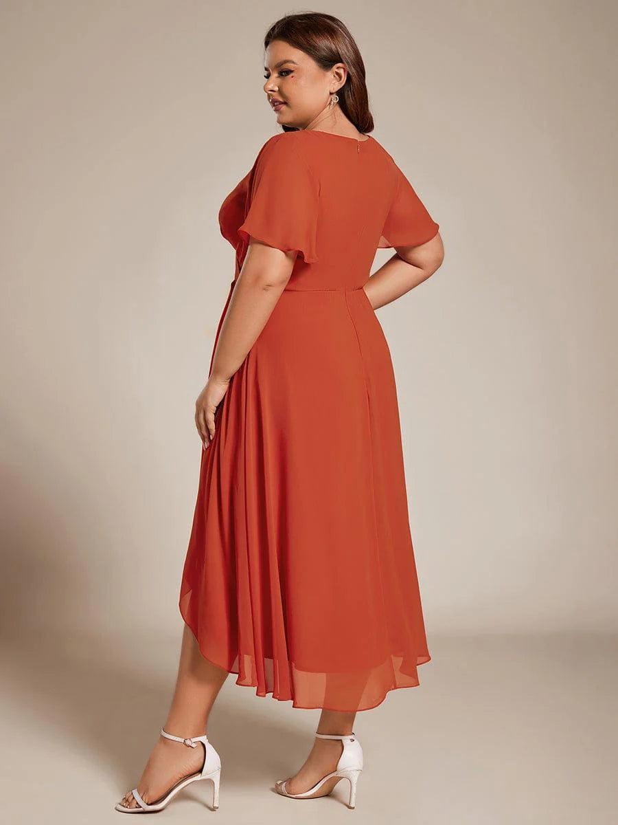 Elevate your evening look with this chiffon midi dress. The pleated bodice flatters your figure, while the delicate ruffled sleeves add a romantic touch. Designed with comfort and grace in mind, its flowing A-line silhouette ensures ease of movement. Perfect for weddings, cocktail parties, or any special occasion.
