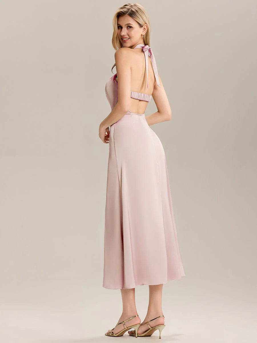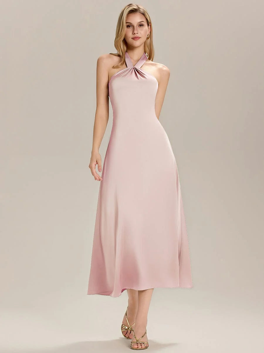 Make a stunning entrance at any wedding in this Backless Satin Sleeveless Dress! Crafted from luxurious satin, this elegant piece features a flattering silhouette that hugs your curves and a daring backless design for a touch of allure. Perfect for dancing the night away while celebrating love!